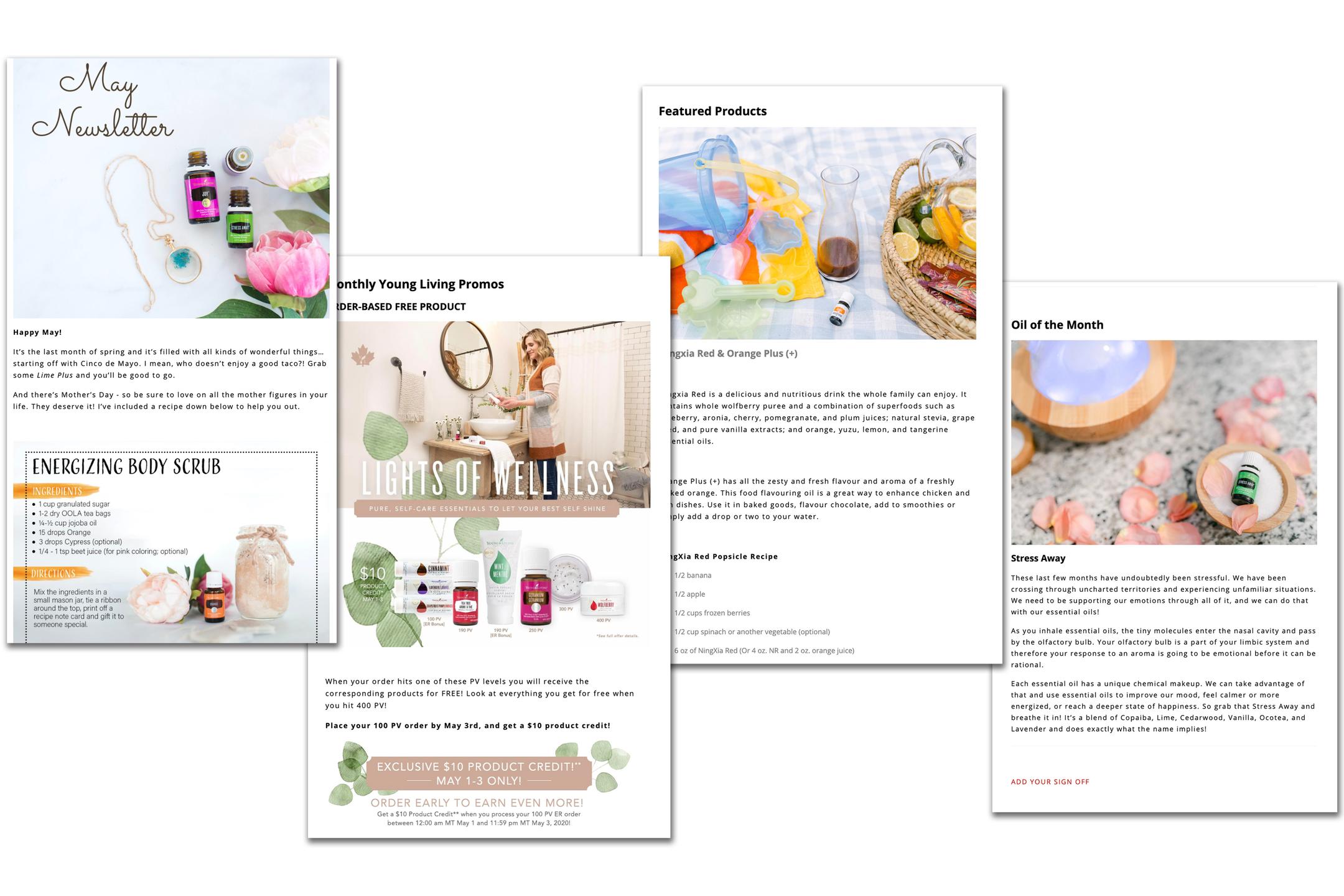 We offer Canadian product photography, class scripts, monthly newsletters, webinar slides, and printouts for you to share Young Living CA with ease!